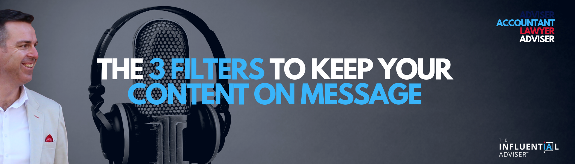 Let me give you a very quick message about content.What sort of content to create, what sort of filters to put it through.
